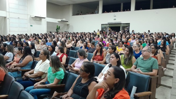 Uma noite lúdica e inspiradora que emocionou profissionais da Educação de Janaúba com uma palestra motivacional para iniciar o ano letivo na Terra da Prosperidade.